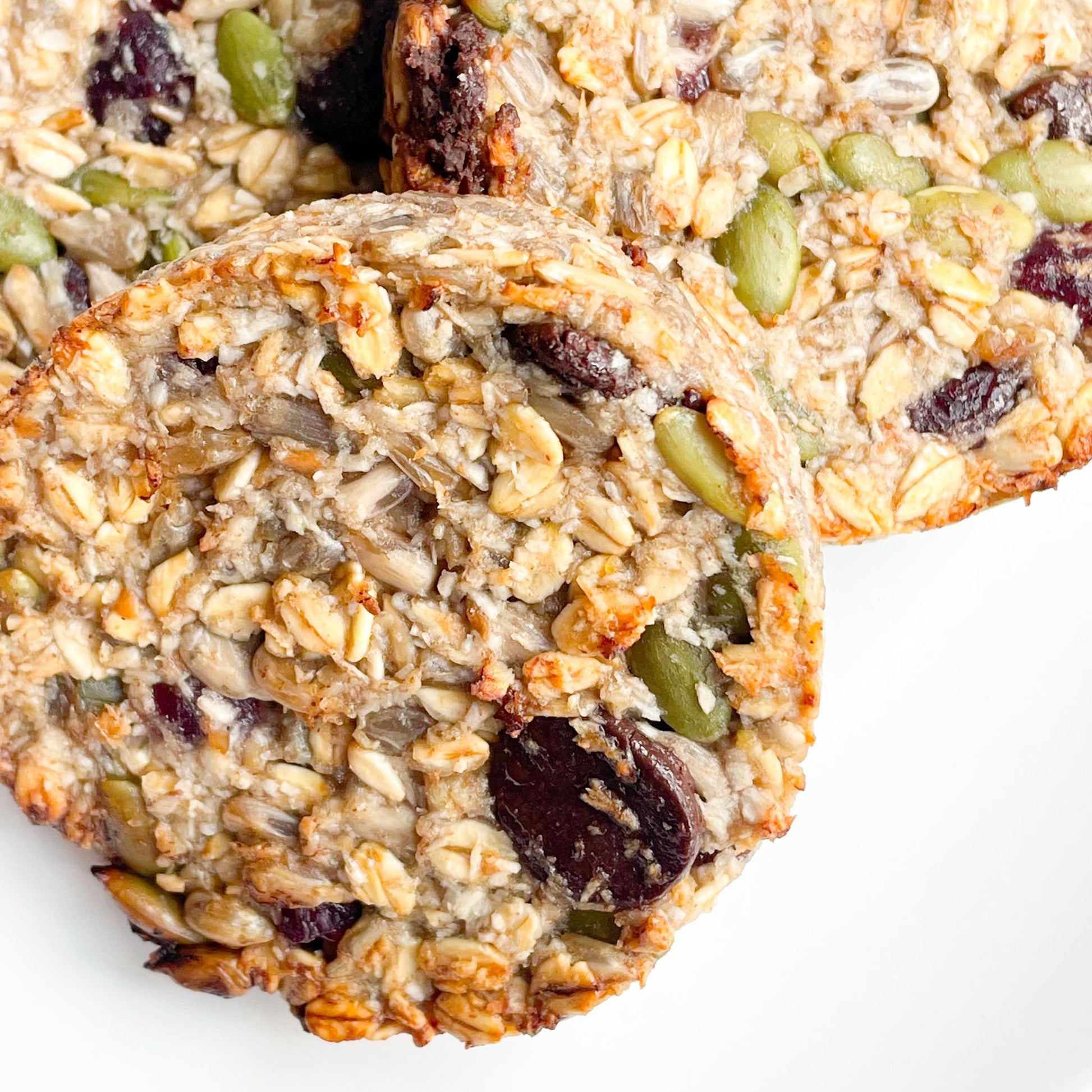 Firminiai 7pack sveikuoliški sausainiai su įvairiomis sėklomis.