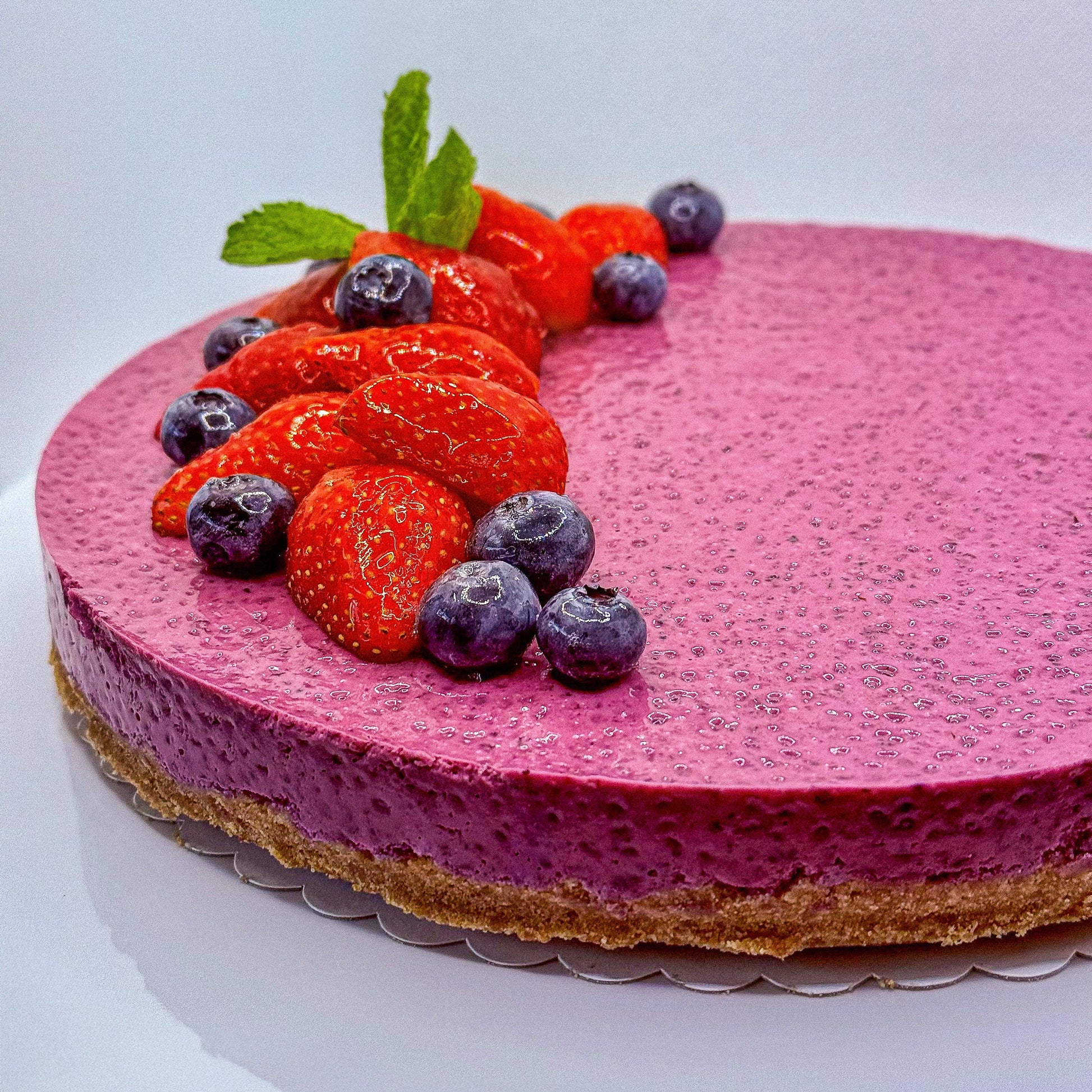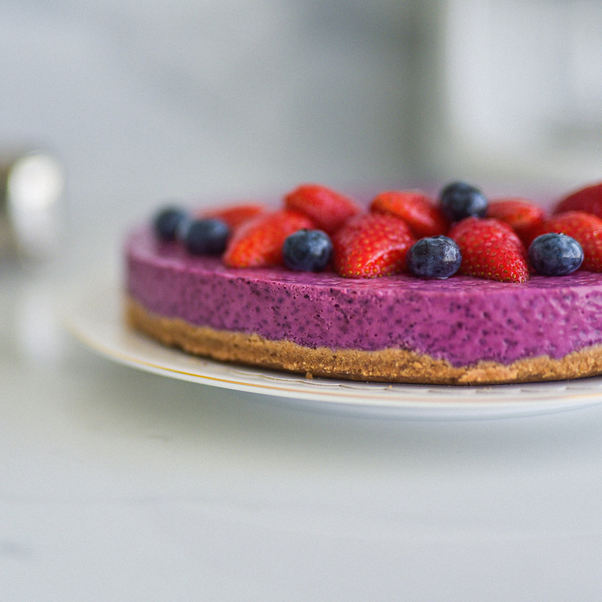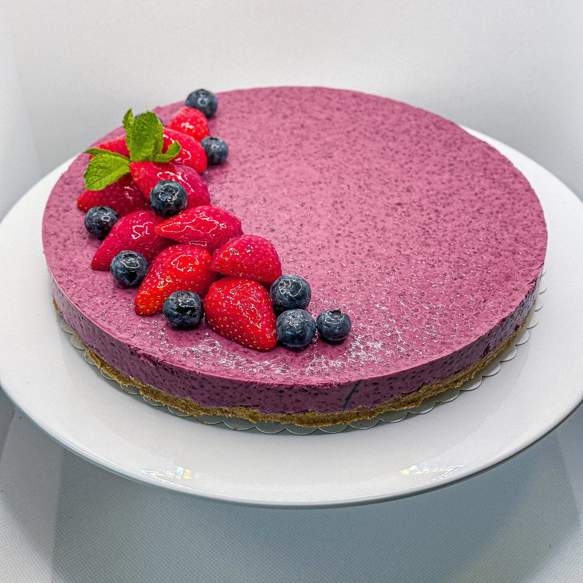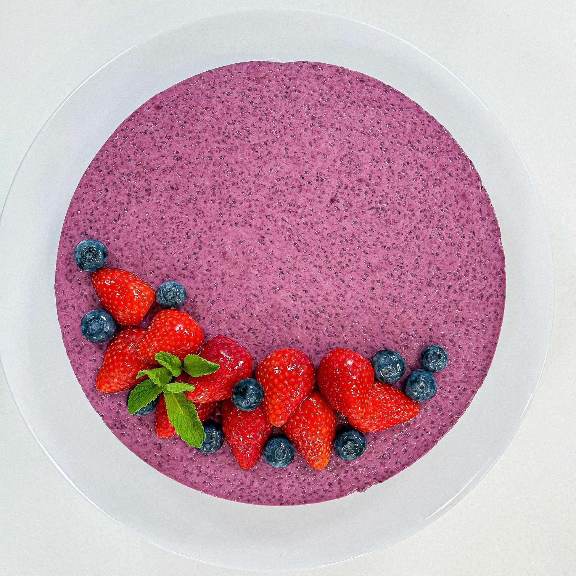 Lengvas, gaivus ir subtiliai saldus desertas, kuriame susilieja natūralus mėlynių skonis, kreminis jogurtas ir švelniai traškus sausainių pagrindas. Chia sėklos ne tik suteikia pyragui malonios tekstūros, bet ir papildo jį maistinėmis medžiagomis. Saldinamas agavų sirupu ir pagardintas natūraliu vanilės ekstraktu – šis pyragas skirtas tiems, kurie vertina natūralumą ir harmoniją skoniuose.