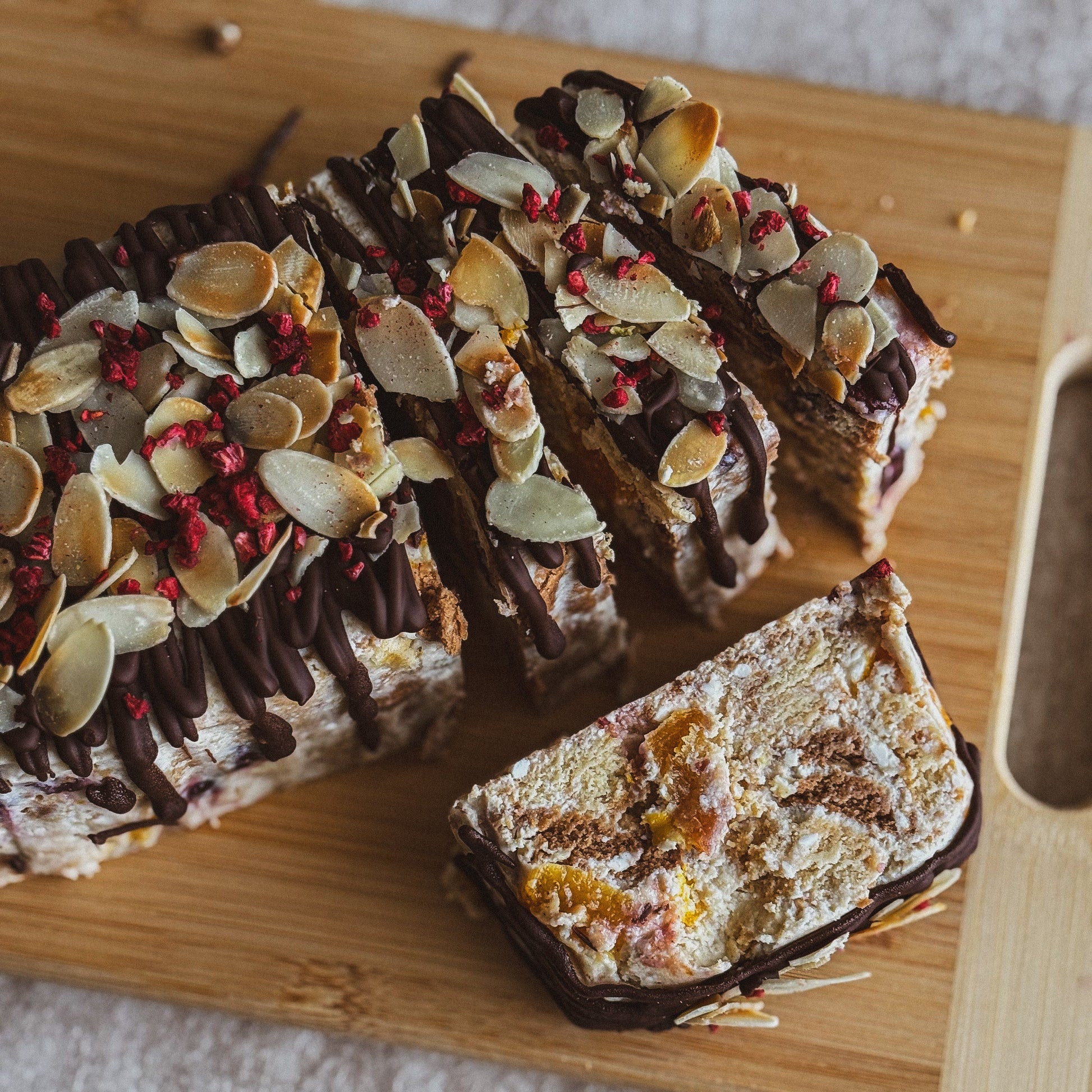 Lengvas, švelnaus skonio desertas, kuriame dera natūrali varškė, trapūs sausainiai ir kremiškas jogurtas. Šį saldų malonumą praturtina agavų sirupas ir sviestas, o džiovintos spanguolės bei abrikosai suteikia tiek gaivumo bei vaisinės saldumos. Tai puikus pasirinkimas tiems, kurie ieško balanso tarp klasikos ir sveikesnio deserto alternatyvos.